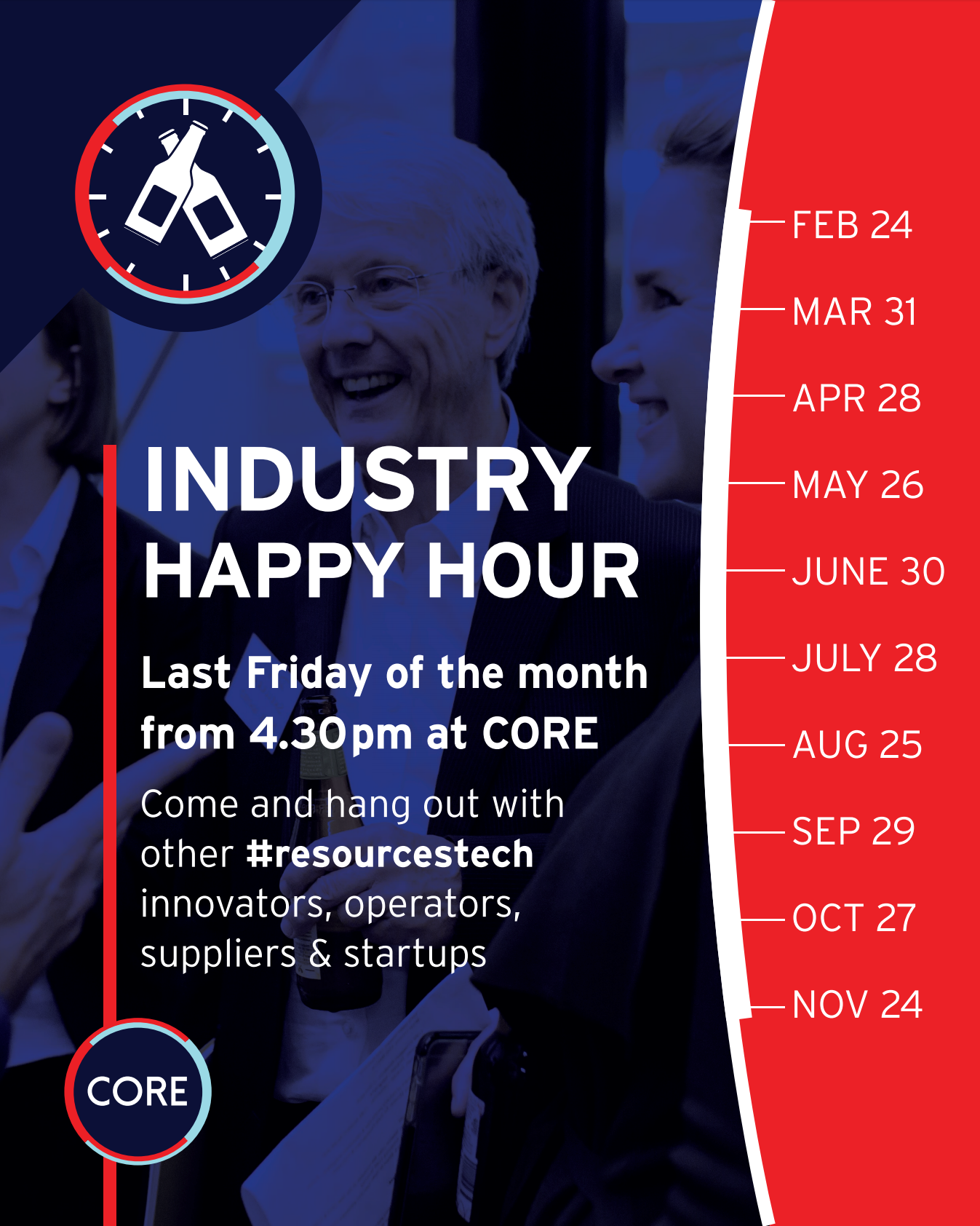 Can't make it to this industry co-hosted event? Not to worry, CORE hosts Industry Happy Hour every last Friday of the month.